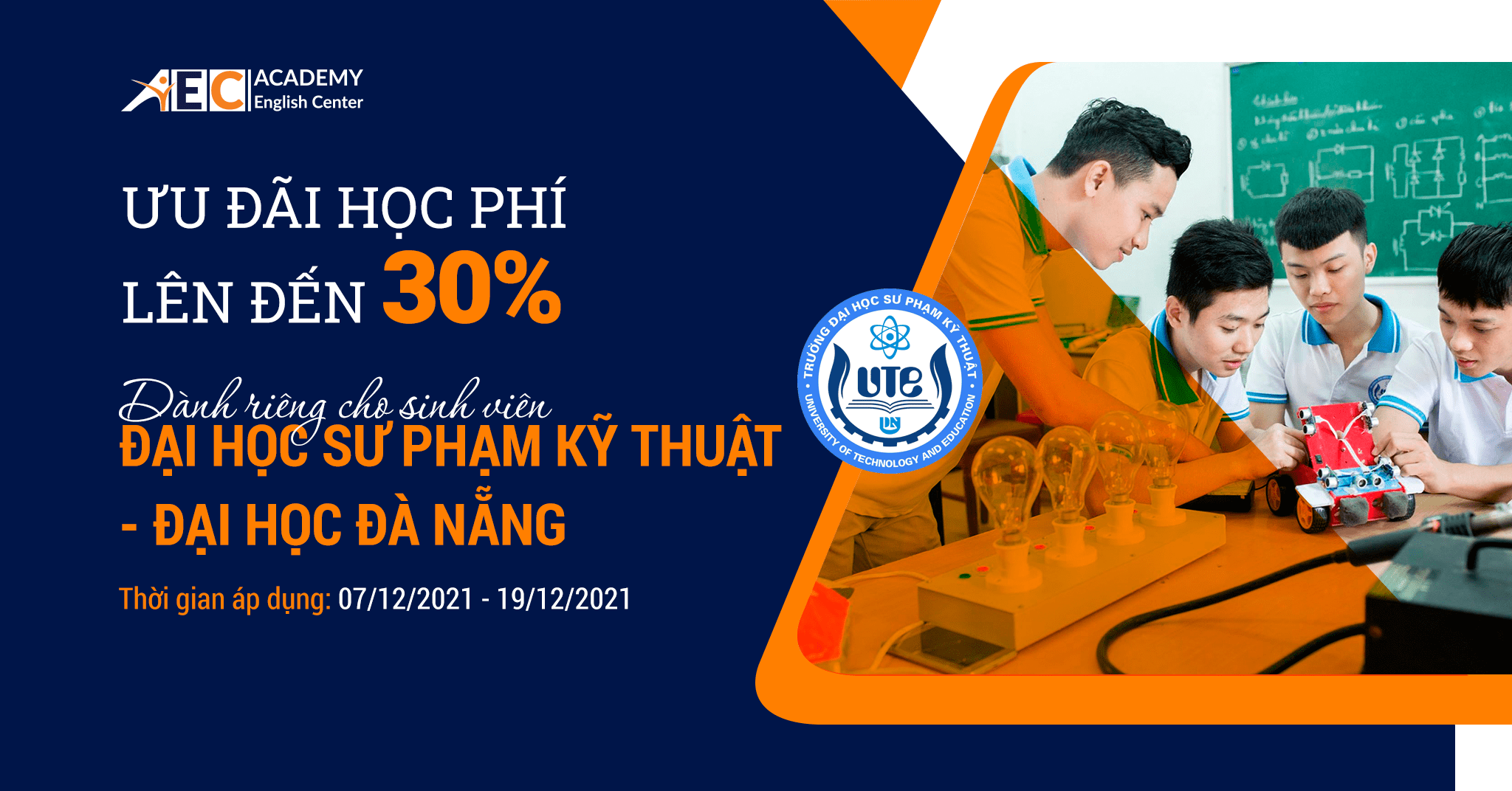 Nhằm tạo điều kiện thuận lợi cho các bạn sinh viên an tâm tham gia học tập, giảm áp lực tài chính cũng như chia sẻ những khó khăn chung mùa dịch, ACADEMY AEC triển khai chương trình ưu đãi học phí lên đến 30% dành riêng cho sinh viên trường Đại học Sư phạm Kỹ thuật – Đại học Đà Nẵng.