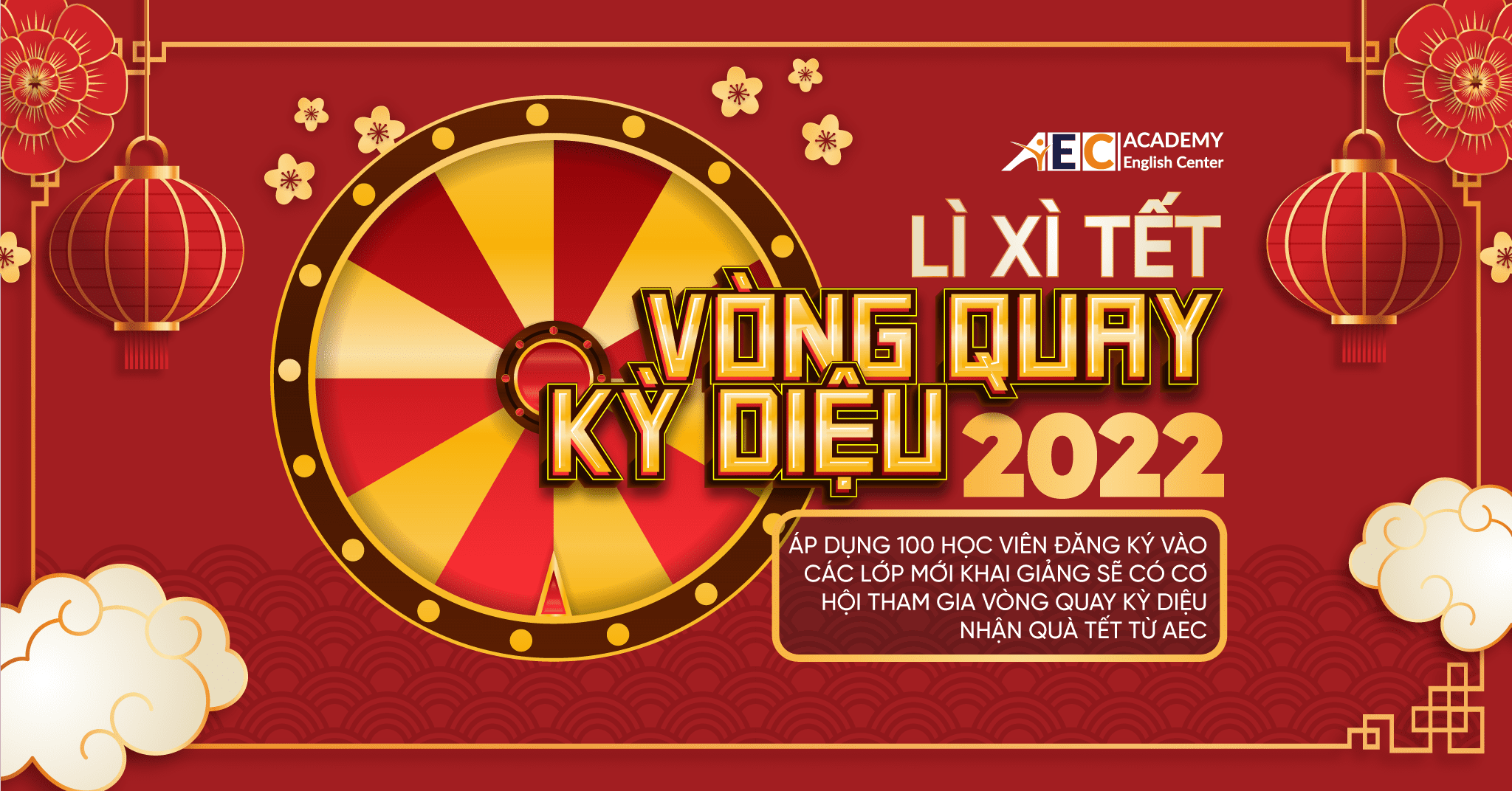 Nhân không khí Xuân mới Nhâm Dần 2022, ACADEMY AEC kính mời Quý Đối tác, Phụ huynh & Học viên tham gia chương trình Đón lộc lì xì đầu năm – 100% cơ hội nhận miễn phí các phần quà Tết giá trị tại Vòng Quay Kỳ Diệu