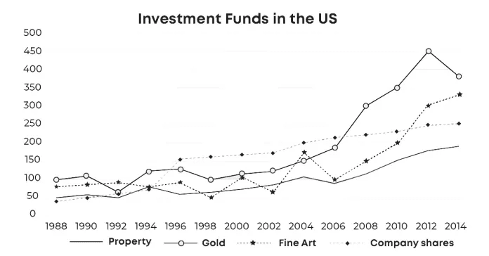 - TASK 1: The graph shows the value in US dollars (in millions of dollars) of investment in funds of four categories from 1988 to 2014.
