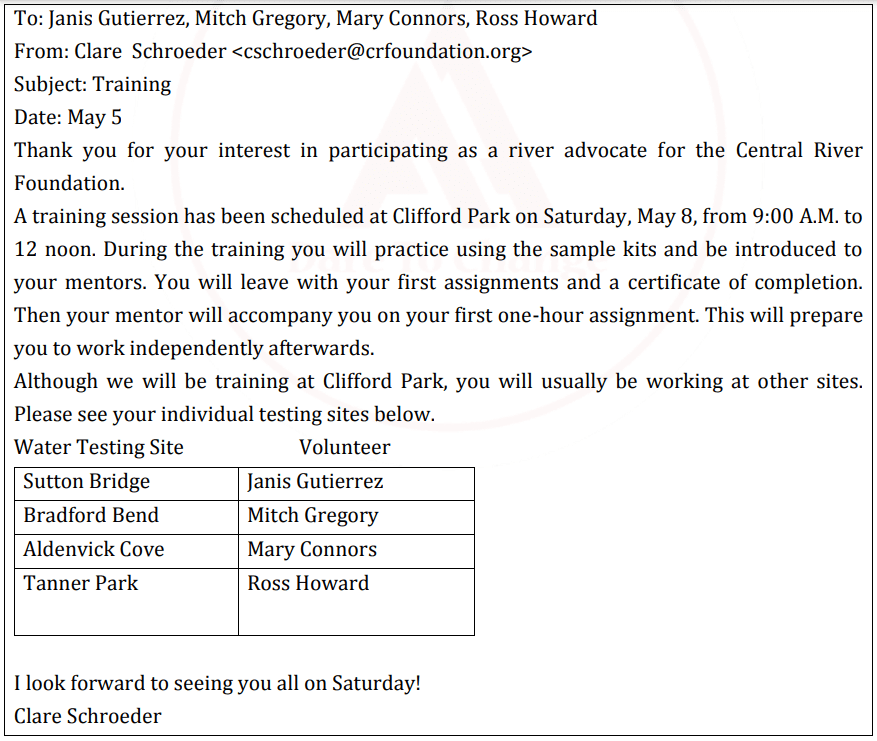 151. What is a purpose of the e-mail?