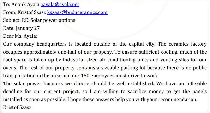 Questions 176-180 refer to the following Web page and email.