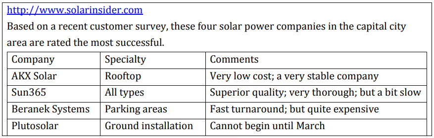 200. What company will Ms. Ayala most likely recommend?